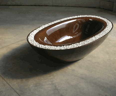 This bathtub makes turns the spartan bathroom into an experiential art piece.